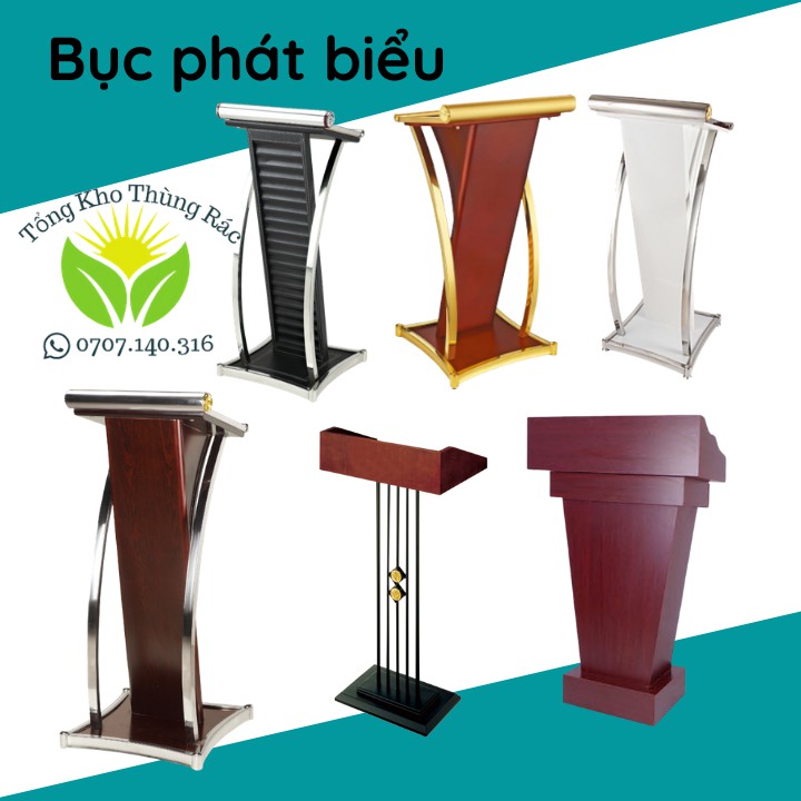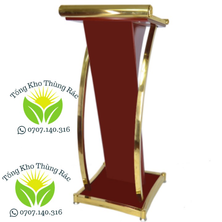- Bục phát biểu khung inox cao cấp màu nâu đỏ có thiết kế đa năng chuyên dụng làm bục phát biểu, bục tiếp tân, bục giảng bài trong trường học, bục thuyết trình hay diễn thuyết trong các sự kiện.