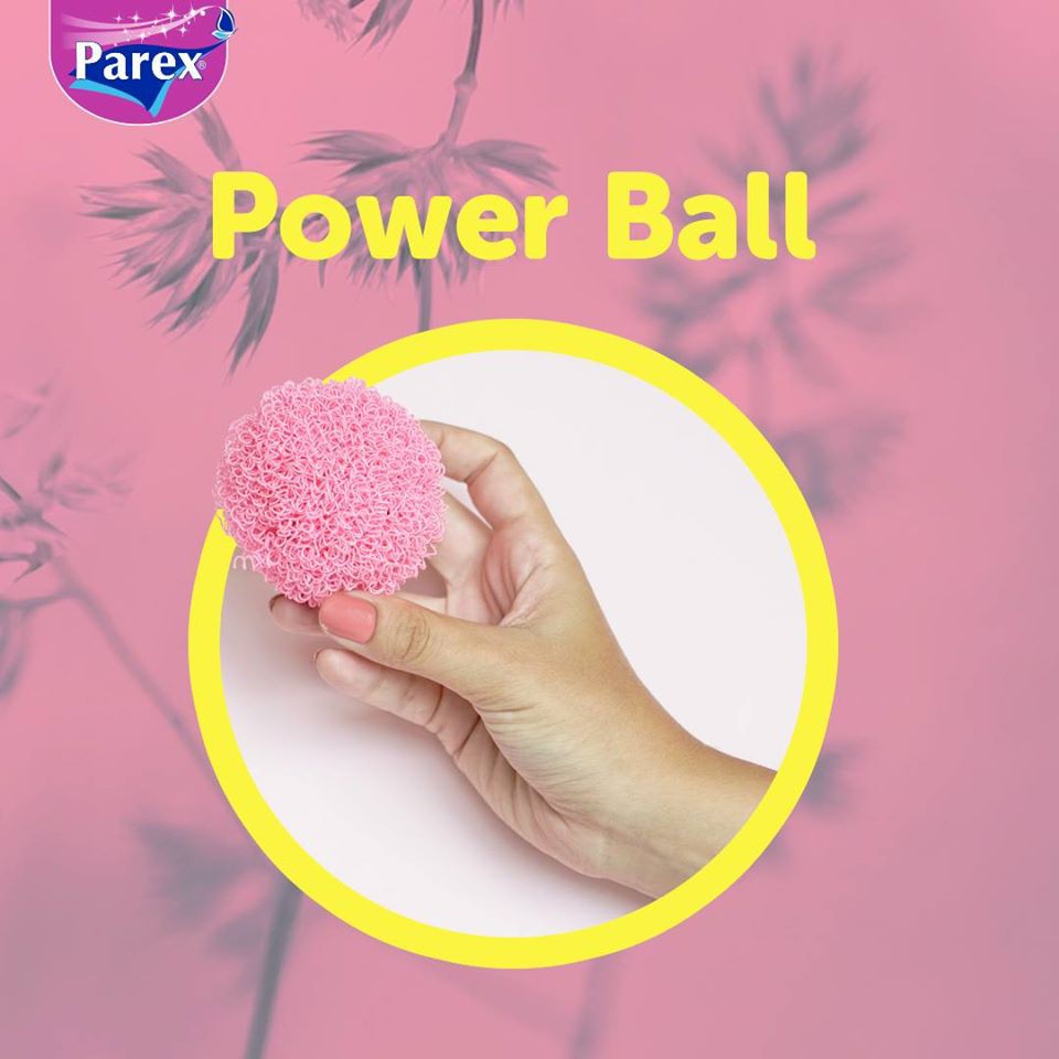 - Bông chà Parex Power Ball được làm từ thép, polyester có thể làm sạch ngay cả vết dầu cháy