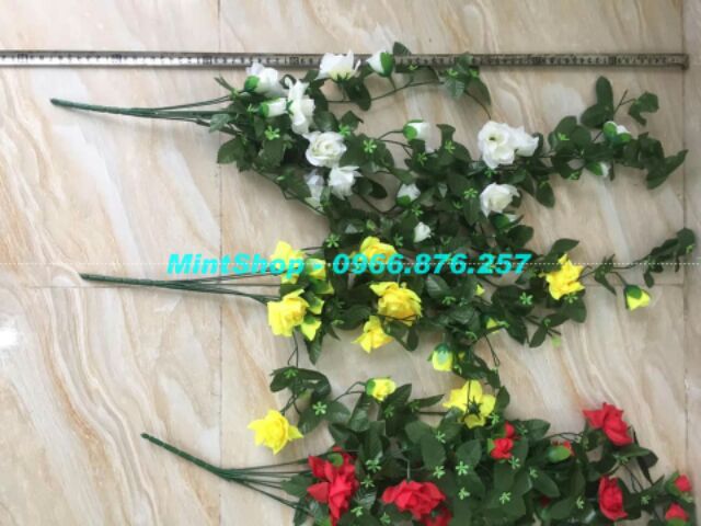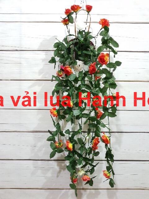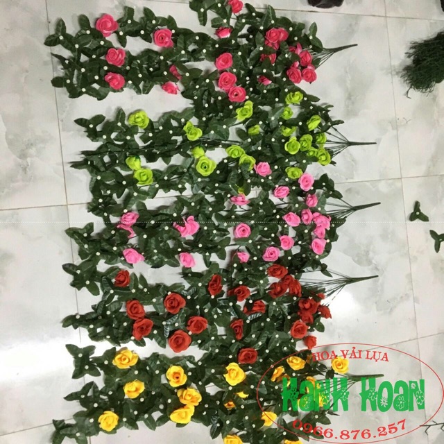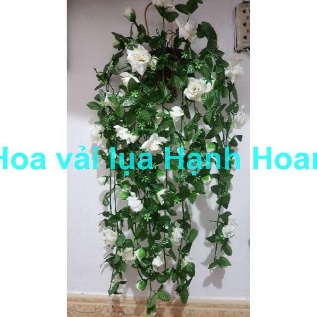 Bụi hoa hồng rủ trang trí giỏ hoa hàng rào, tường, quán Cafe, nhà cửa, trường mầm non, siêu thị,...- Chất liệu: thân nhựa pvc bọc kẽm, lá hoa vải
