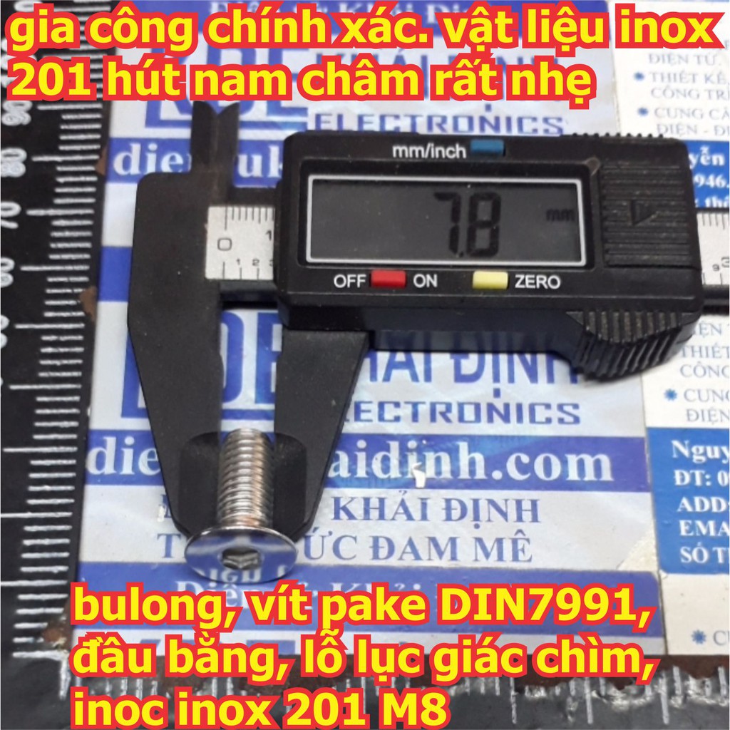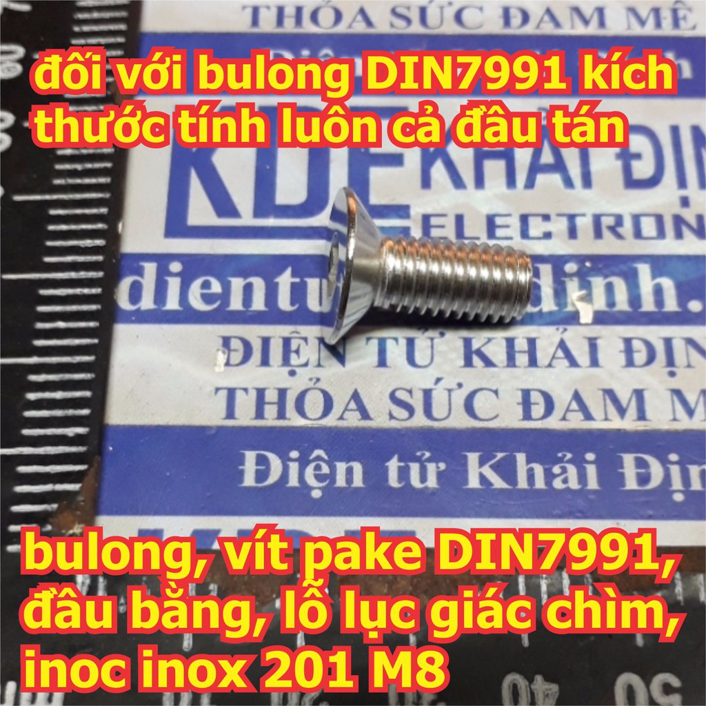 bulong, vít pake DIN7991, đầu bằng, lỗ lục giác chìm, inoc inox 201 M8 các loại 12mm ~100mm kde6120quý khách để ý kích thước và số lượng ở ô phân loại hàng.