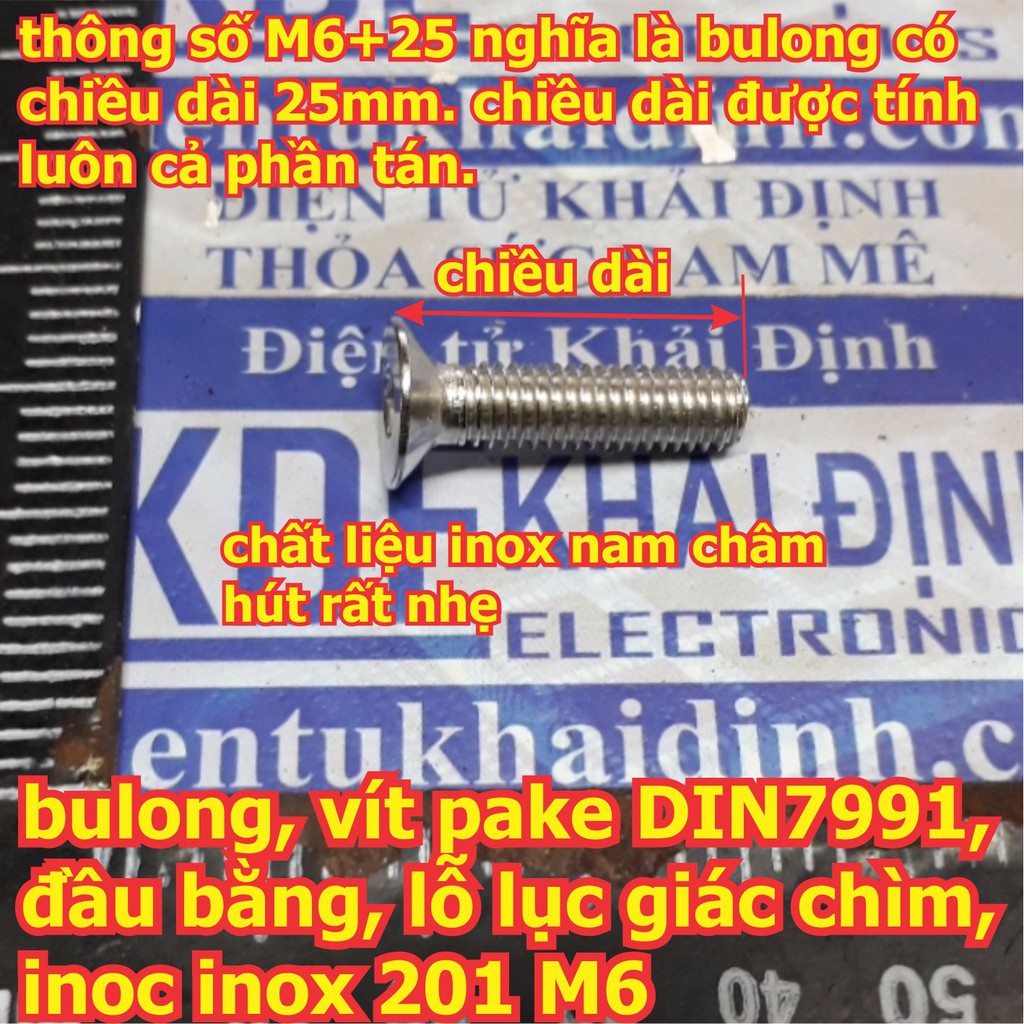 Máy tính & Laptop > Linh Kiện Máy Tính > Khác || bulong bu lông vít pake DIN7991, đầu bằng, lỗ lục giác chìm, inoc inox 201 M6 dài 10mm ~ 100mm kde6137Còn hàng