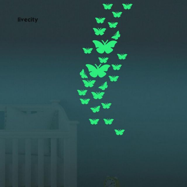 Hướng dẫn sử dụng : trước khi đem dán bạn nên đem phơi sáng từ 30 phút tới 2h đồng hồ. Được hấp thụ ánh sáng, những con bướm sẽ phát sáng lung linh mờ ảo trong đêm tối. Vô cùng đẹp mắt và thú vị.- sản phẩm gồm : 12 bướm có kích thước màu sắc , hình dáng khác nhau.