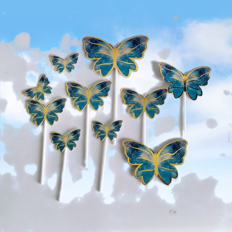 Set bướm giấy trang trí bánh kem- Chất liệu: Hàng giấy cứng loại 1 phủ ánh kim sáng lấp lánh