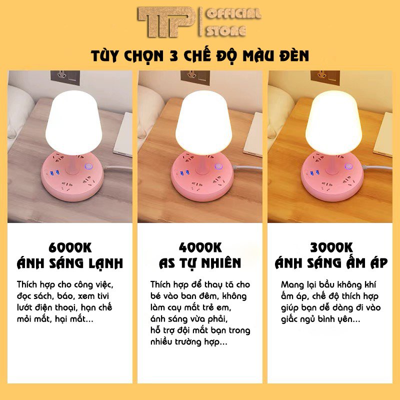 Thiết Bị Điện Gia Dụng > Mạch điện & Phụ tùng > Ổ cắm điện & Dây nối || [Bán buôn] Đèn Ngủ 3 Chế Đọ Để Bàn Kiêm Ổ Điện, Cổng Sạc Điện Thoại-Có Kèm Điều KhiểnCòn hàng
