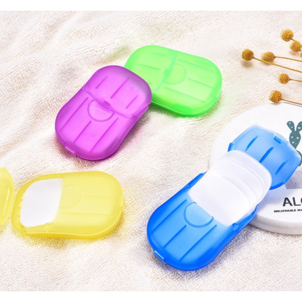 Nhà cửa & Đời sống > Đồ dùng phòng tắm > Kệ để đồ phòng tắm || [ BUÔN HÀNG SỈ ] Hộp 20 giấy xà phòng sử dụng một lần mang đi du lịch tiện dụngCòn hàng