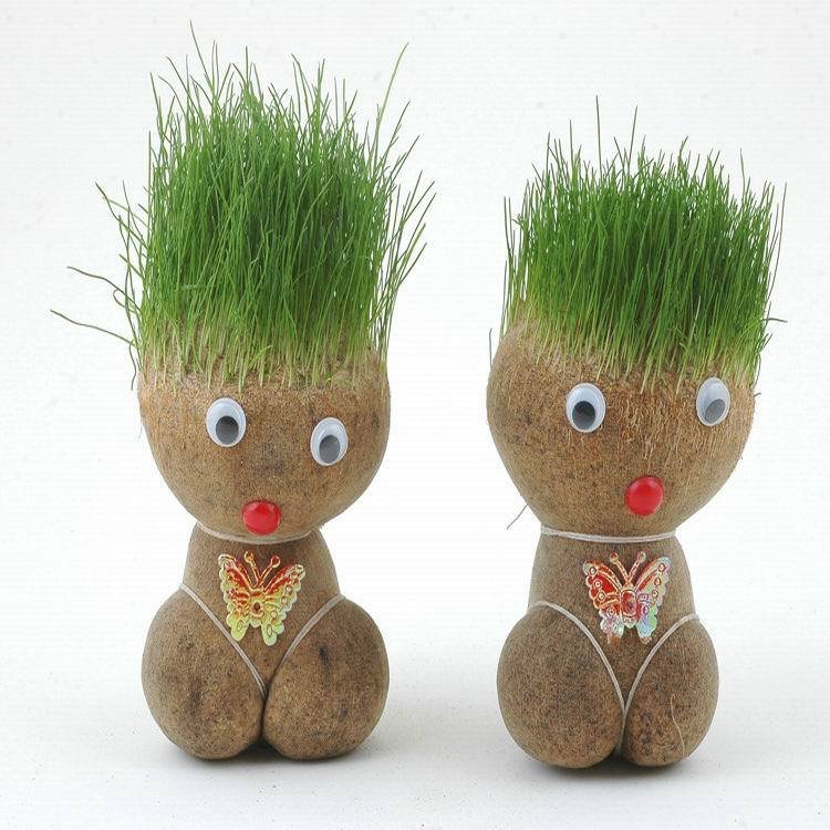 Giới thiệu Búp bê đầu cỏ mọc tóc mini dễ thương trồng cây cỏ trang trí phòng học bàn làm việc tạo sự may mắn