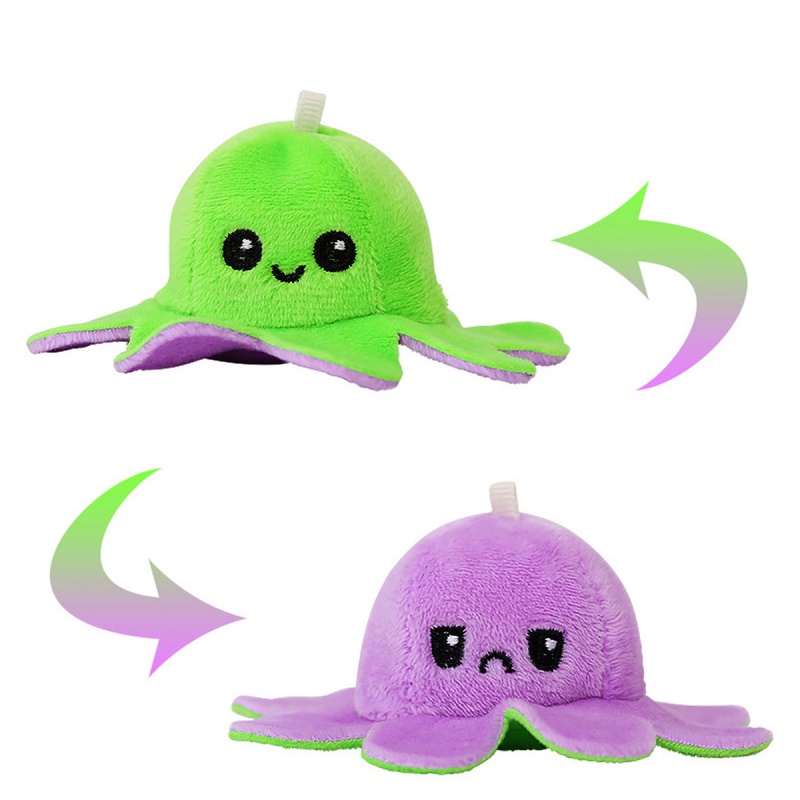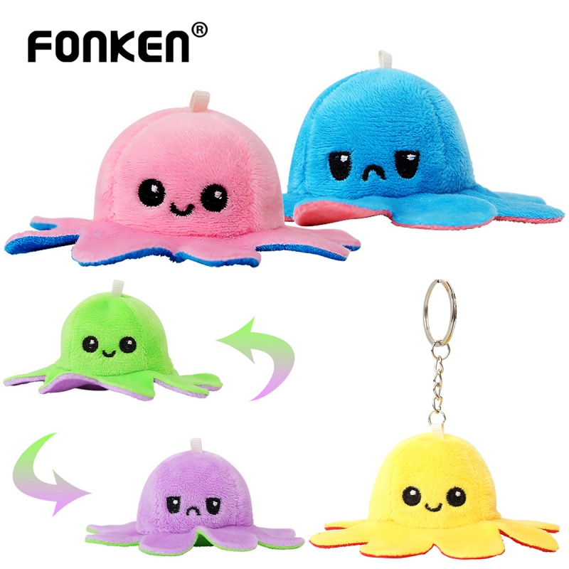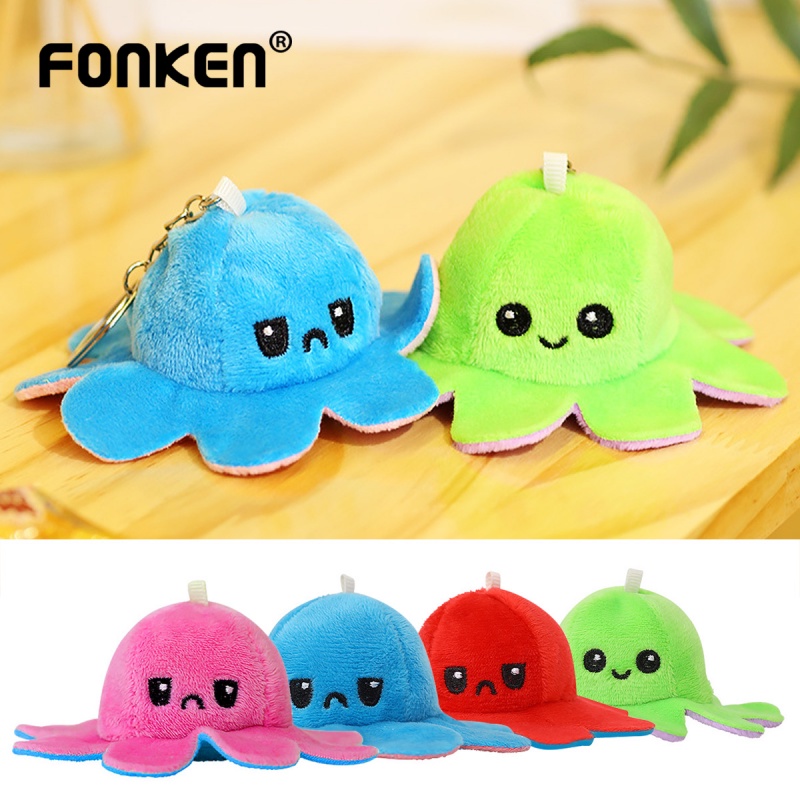 Búp bê nhồi bông FONKEN hình bạch tuộc 2 mặt đổi màu và biểu cảm có móc khóa