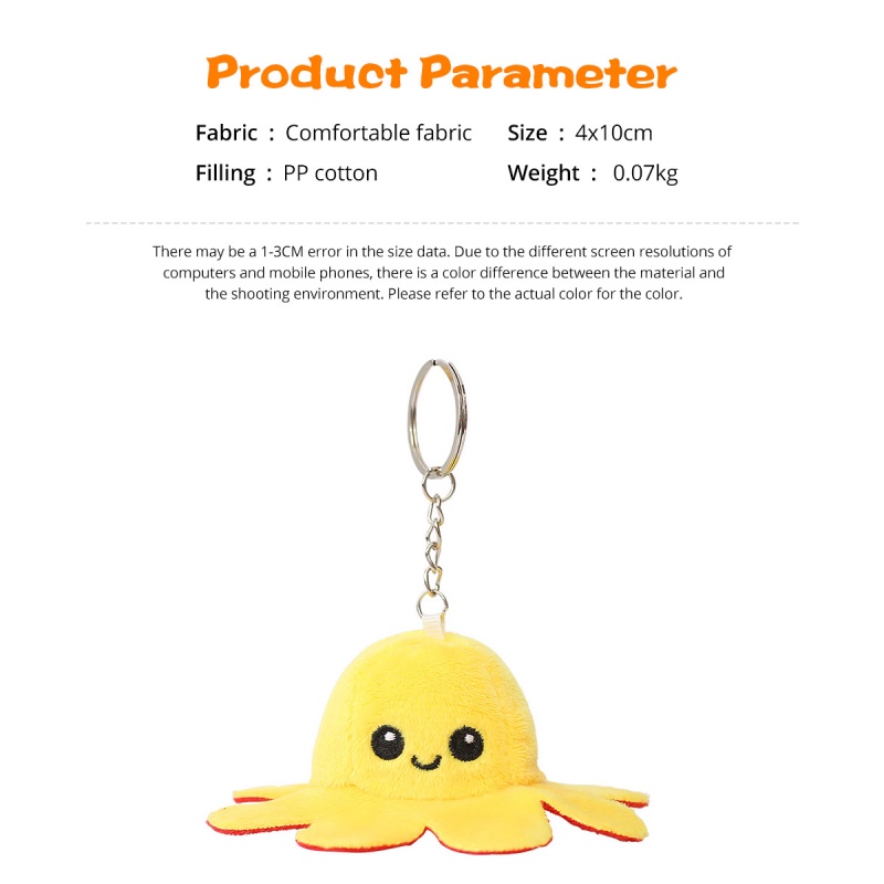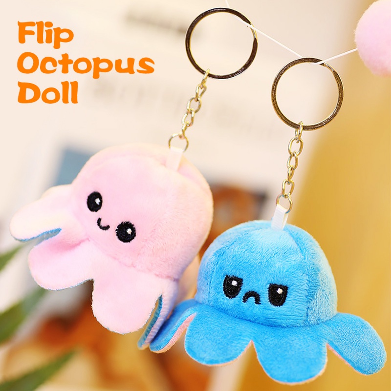 Điện Thoại & Phụ Kiện > Phụ kiện > Dây đeo điện thoại & Móc khóa || Búp bê nhồi bông FONKEN hình bạch tuộc 2 mặt đổi màu và biểu cảm có móc khóaCòn hàng