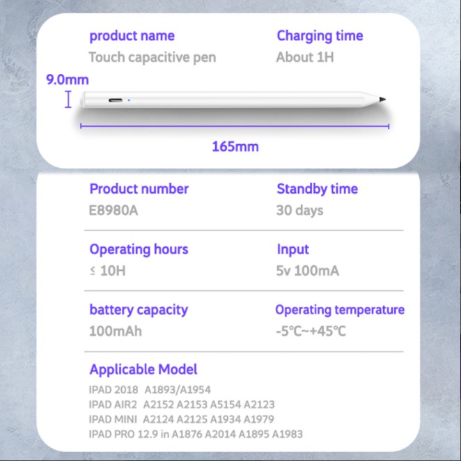 ⚡ Thời lượng pin dài: - Bút iPad tích hợp pin cung cấp 20 giờ sử dụng trong khi sạc đầy bằng cáp Micro USB trong 60 phút. Chế độ ngủ thông minh và tự động tắt nguồn sau 5 phút không hoạt động đảm bảo tiết kiệm năng lượng, an toàn và tuổi thọ lâu dài.