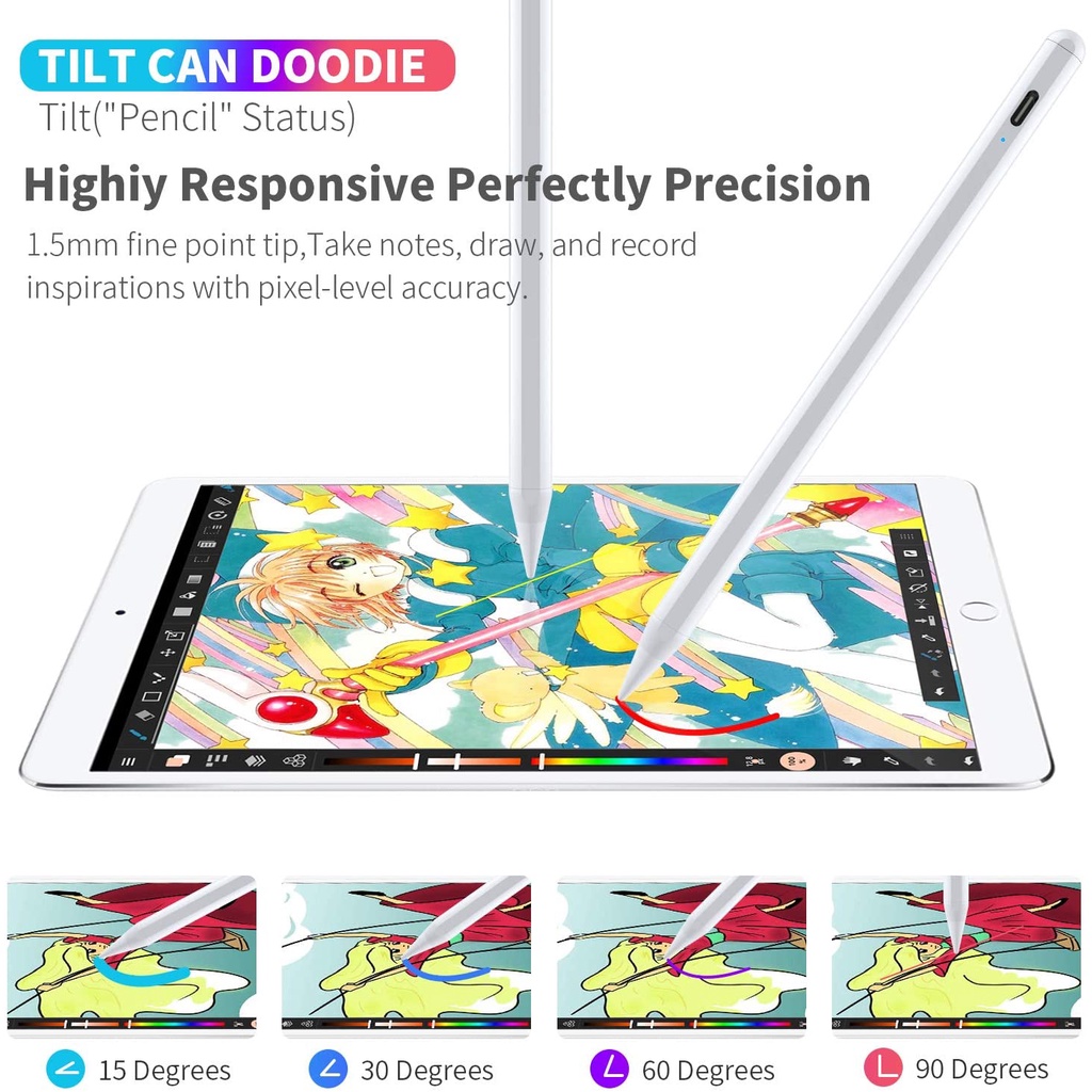 Bút cảm ứng cho ipad được trang bị đầu bằng sợi carbon 1.2mm, chính xác và nhạy hơn, không cần phóng to để viết chữ nhỏ. Cảm giác viết mượt mà, không có độ trễ, không bị bỏ chữ.