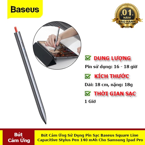 Giới Thiệu Bút Cảm Ứng Baseus Square Line Capacitive Stylus Pen (Anti Misoperation) Sử Dụng Pin Sạc 140mah Cho Samsung Ipad Pro