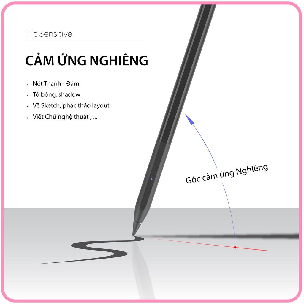 Bút có Tính năng Chống tì tay (Palm rejection) và Cảm ứng nghiêng (Tilt sensitive) :