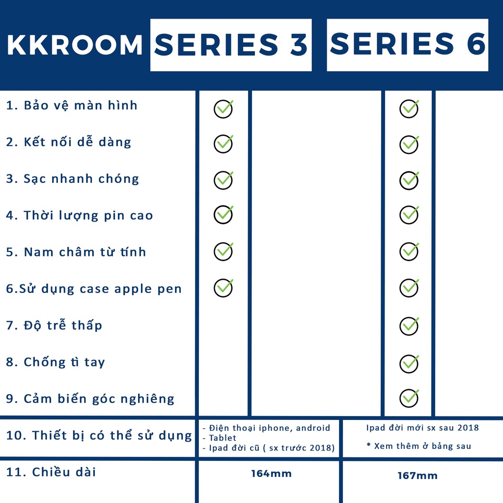 - Kkroom S6: chỉ sử dụng cho ipad đời mới ( xem thêm kiểm tra model trên ảnh ).Bút cảm ứng có tính năng chống tì tay chỉ sử dụng khi khách hàng sd Ipad đời mới sx sau 2018 , kể cả iphone mới cũng không sử dụng được