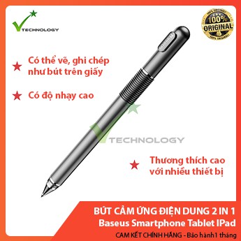 Điện Thoại & Phụ Kiện > Phụ kiện > Bút cảm ứng || Bút Cảm Ứng Điện Dung 2 Trong 1 Baseus Smartphone Tablet IPad - Xám đen - Hàng chính hãngCòn hàng