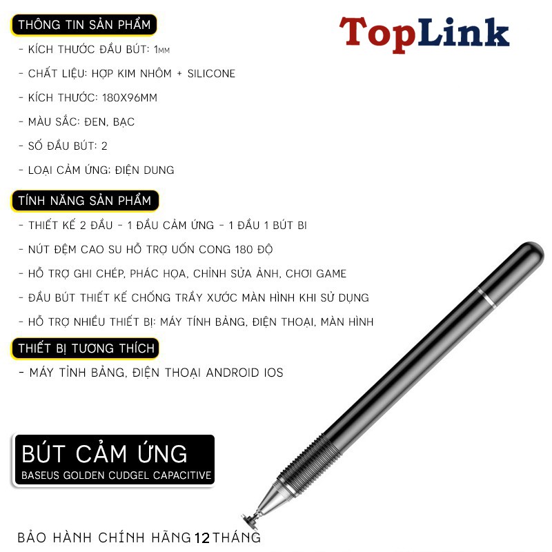 Bút Cảm Ứng Điện Dung Hãng Baseus - Bút Vẽ Cho Iphone Ipad Iphone Samsung Xiaomi Huawei Tablet Pen Phù Hợp Với Tất Cả Các Smartphone Cảm ỨngChào mừng bạn đến với TOPLINK - Thế Giới Phụ Kiện