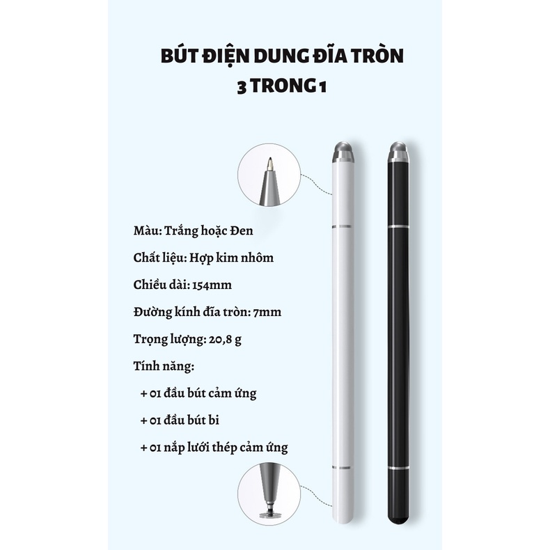Điện Thoại & Phụ Kiện > Phụ kiện > Bút cảm ứng || Bút cảm ứng điện dung đĩa tròn 3 trong 1 siêu nhạy, tương thích với tất cả các loại điện thoại và máy tính bảng.Còn hàng