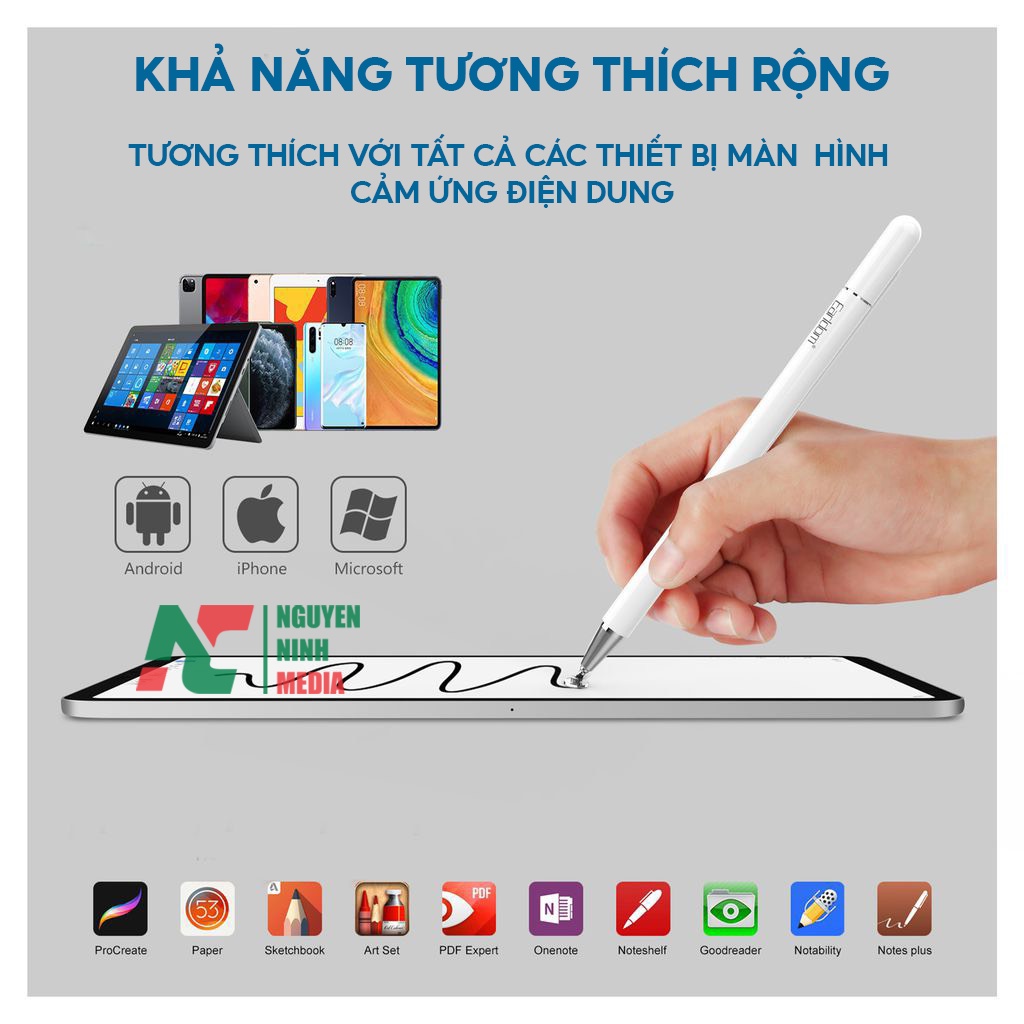 - Sản phẩm này sử dụng công nghệ cảm ứng điện dung tương thích với toàn bộ các loại màn hình từ điện thoại thông minh, Taplet đến màn hình cảm ứng của laptop giúp bạn dễ dàng sử dụng