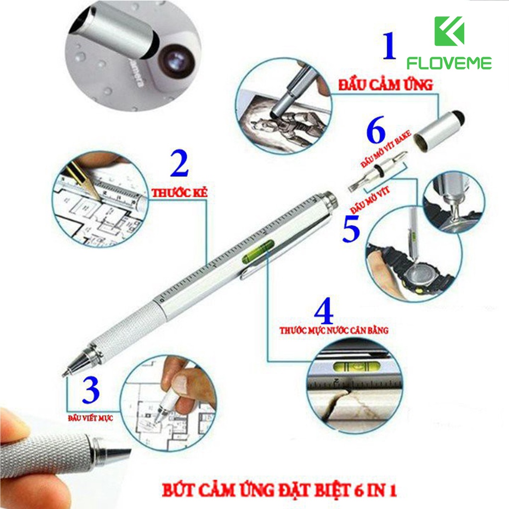 Điện Thoại & Phụ Kiện > Phụ kiện > Bút cảm ứng || Bút cảm ứng Floveme 6 in 1 Đa Chức Năng Đầu Bút Cảm Ứng Chạm Màn Hình Tích Hợp Tua Vít Tiện LợiCòn hàng