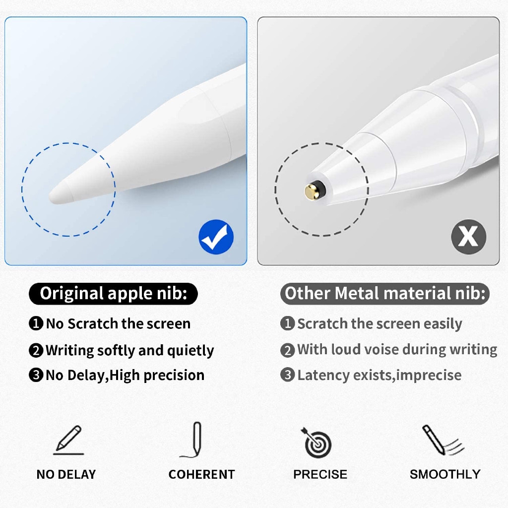 ▶ Kèm 1 ngòi bút dự phòng màu trắng: Phiên bản dành riêng cho iPad của Apple, phù hợp với iPad phiên bản 2018/2019/2020. Với 1 ngòi bút dự phòng, có từ tính, có chức năng chống chạm.