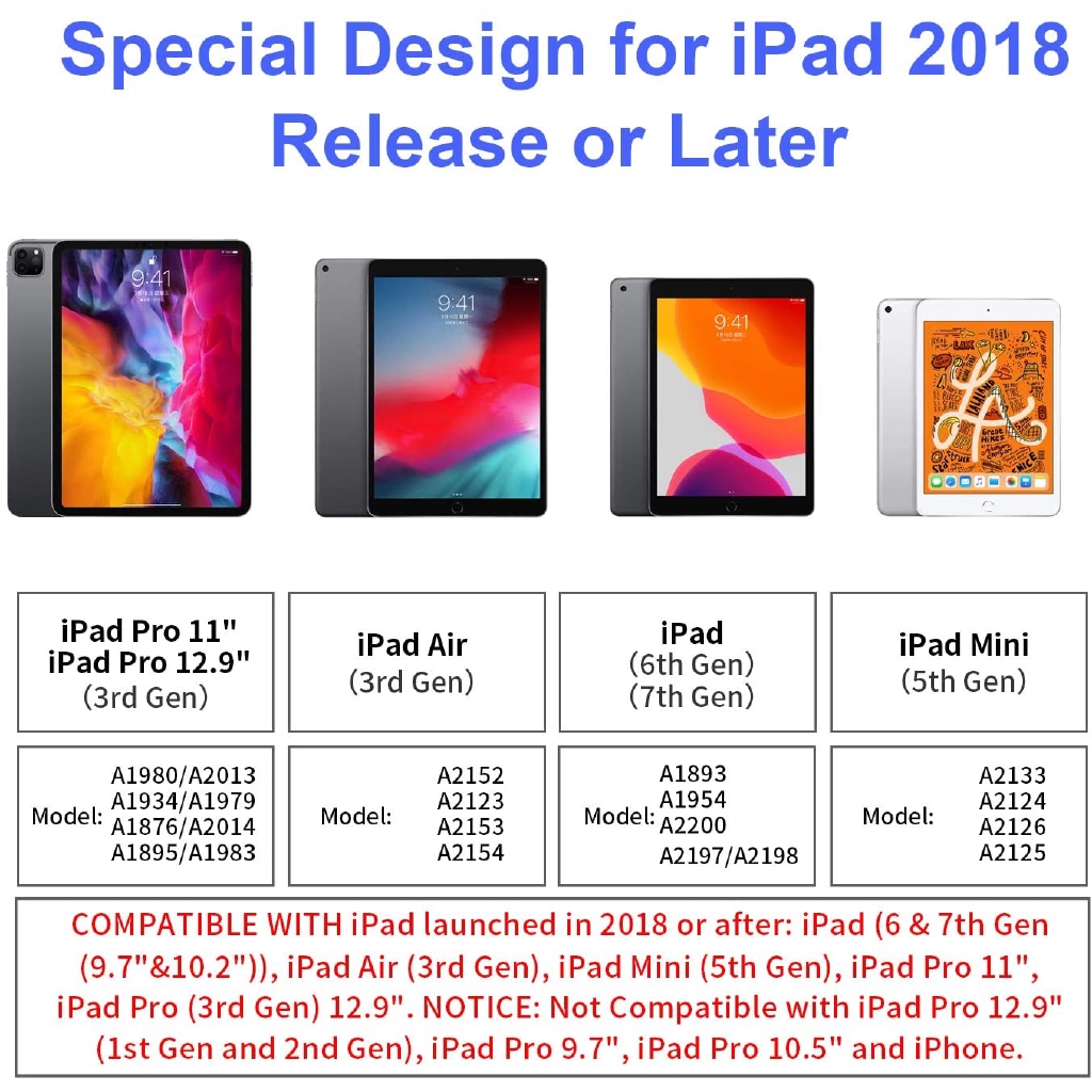 Tương thích với các mẫu bút chì Apple iPad thế hệ thứ 2 2018/2019/2020/2021 trở lên:
