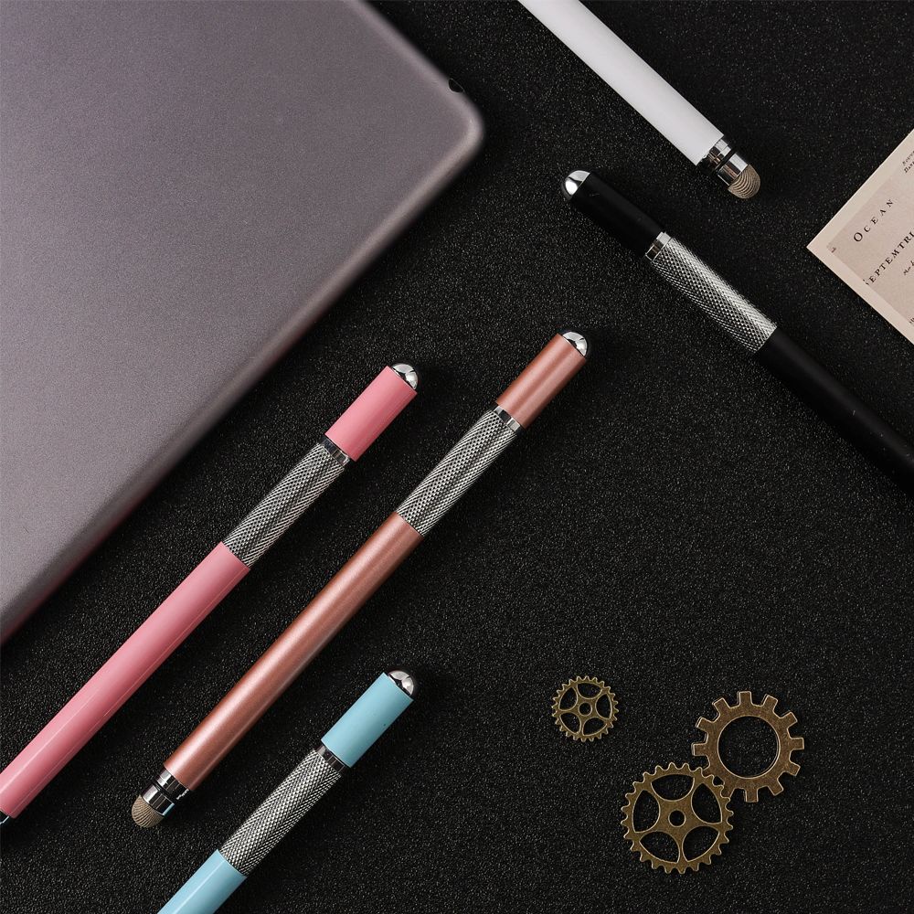 2-in-1 design: fiber-tipped at one end and silicon disc stylus at the other end