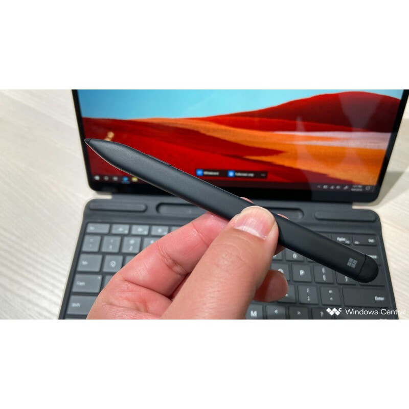 Surface Slim Pen là chiếc bút cảm ứng có mặt khi mà Surface Pro X ra mắt trong sự kiện ngày 2/10 vừa qua. Rất nhiều người đã chú ý đến chiếc bút này, không chỉ có thiết kế khác với Surface Pen trước đây mà ngay cả chức năng cũng không thua kém gì so với chiếc bút trước đây.Trước đây Surface Pen sử dụng pin AAAA để hoạt động thì giờ đây Slim Pen đã có thể sạc không dây chỉ giúp người dùng thân thiện hơn, không phải mua hay để Pin AAAA bên cạnh máy nữa. Chỉ cần thông qua bộ sạc USB Type-C sẽ cung cấp năng lượng của chiếc bút hoạt động.