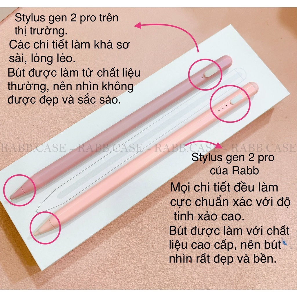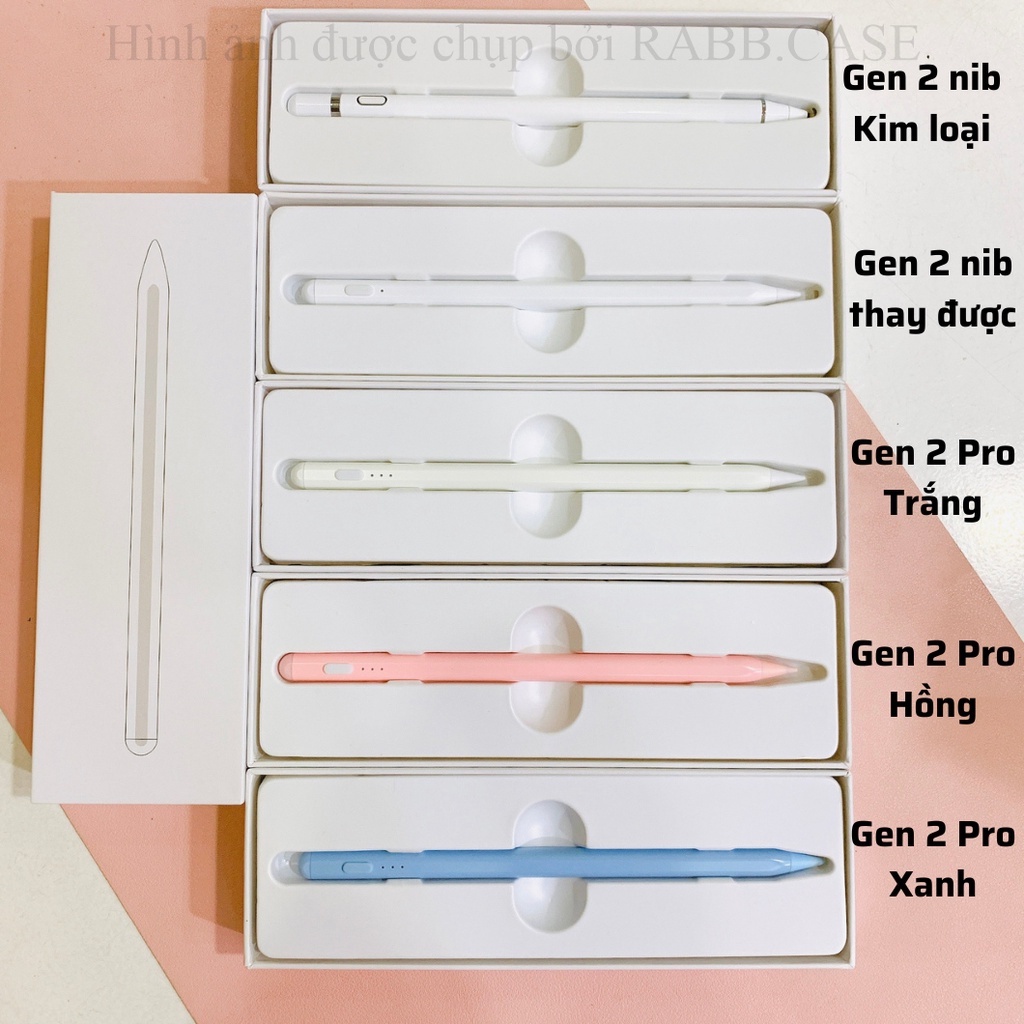 - Stylus Gen 2 Pro: Chỉ dùng được cho các dòng iPad sản xuất từ năm 2018 trở đi (Danh sách bên dưới). Hỗ trợ vẽ nét nghiêng, Chống tỳ đè (Mistouch), có thể tỳ tay lên màn hình lúc viết/vẽ thoải mái mà không sợ bị loạn cảm ứng.