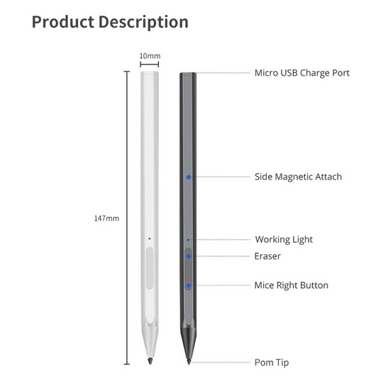 2. Chất liệu cao cấp: Thân bút stylus dành cho Microsoft được làm bằng hợp kim nhôm, bền và thích hợp sử dụng hàng ngày. Thiết kế kẹp vừa vặn hoàn toàn trong tay, bút cảm ứng này hoạt động rất thời trang và thoải mái khi cầm trên tay. Chức năng từ chối lòng bàn tay có thể tự động nhận dạng bút đối với bề mặt, cho phép bạn viết thoải mái.