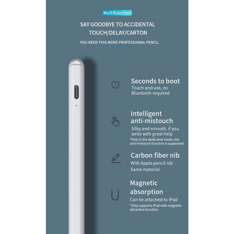 5. So với Apple Pencil, nó không yêu cầu kết nối Bluetooth và có thể sử dụng trực tiếp. Khi vẽ, bạn có thể ngăn chặn vô tình chạm vào tay màn hình và để lại dấu vết để không ảnh hưởng đến việc tạo ra.