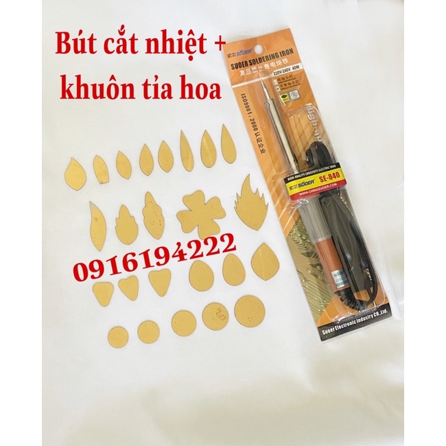 -- Bộ khuôn tỉa hoa lá + bút cắt nhiệtgiúp các Chị thợ may thoả sức sáng tạo các hoa vải trang trí, đắp áo độc lạ, không đụng hàng.
