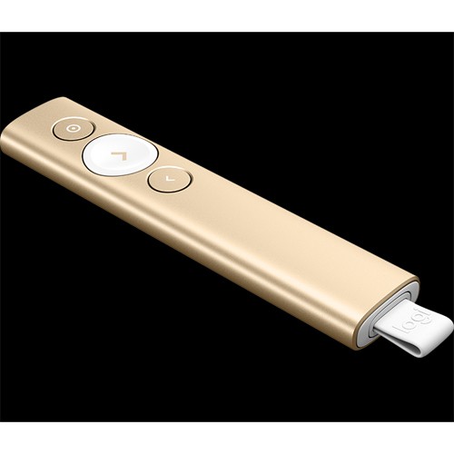 Bút (Chuột) trình chiếu Logitech SPOTLIGHT VÀNG GOLD thiết kế nhỏ gọn, hiện đại, và vô cùng tiện dụng được thiết kế hai nút điểu chỉnh qua lại để tạo thuận tiện cho người sử dụng quản lý tốt những slide của mình và điểu chỉnh slide trùng khớp với những ý tưởng mà mình đang trình bày.