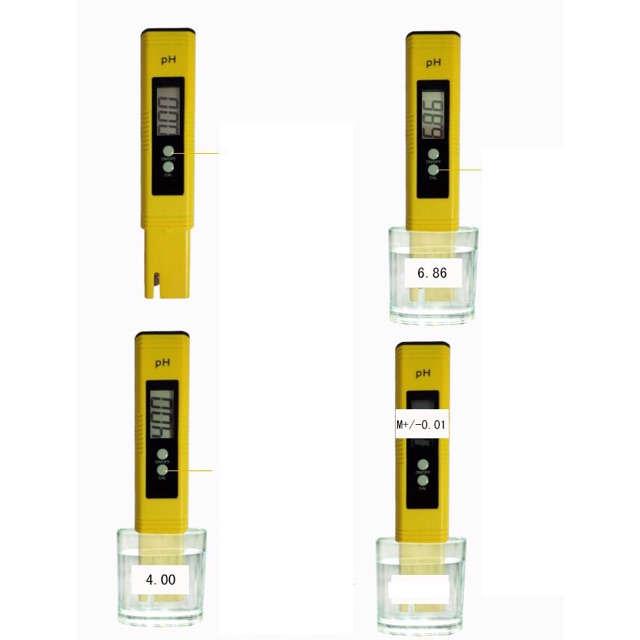 Thực hiện theo các hướng dẫn trên các gói hiệu chuẩn 4.01 hoặc 6.86 đi kèm, nhúng DỤNG CỤ ĐO PH vào dung dịch hiệu chuẩn và dùng tua vít để vặn về đúng chỉ sốt ghi trên gói dung dịch.