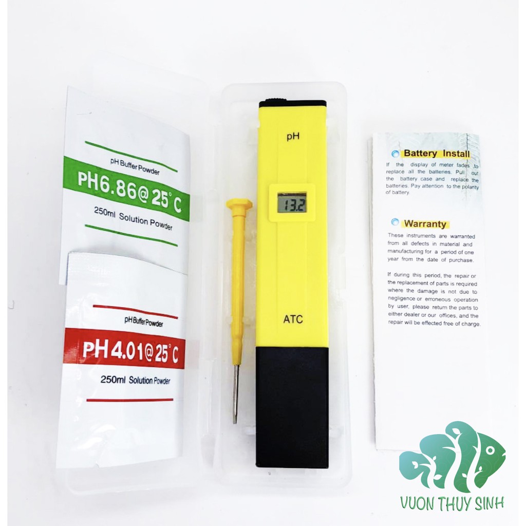 Bút đo PH ATC chuyên dùng đo nồng độ PH trong nước, Bút đo PH đi kèm hai gói bột dung dịch giúp bạn có thể hiệu chỉnh chính xác thông số PH cho cây bút. Bút đo Ph giúp bạn kiểm soát được nguồn nước xem các thông số ph để biết nguồn nước bị nhiễm axit hay kim loại (Ph thấp nguồn nước chứa axit, ph cao nguồn nước chứa kim loại). Thông thường để nuôi cá tốt thì nguồn nước phải đảm bảo độ PH ở ngưỡng 6.8 tới 7.2 .