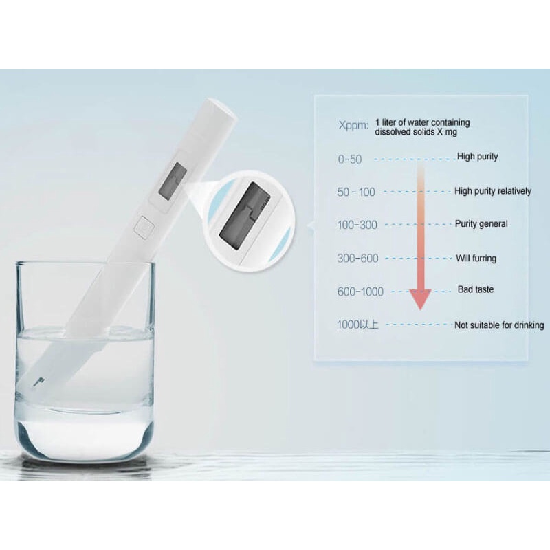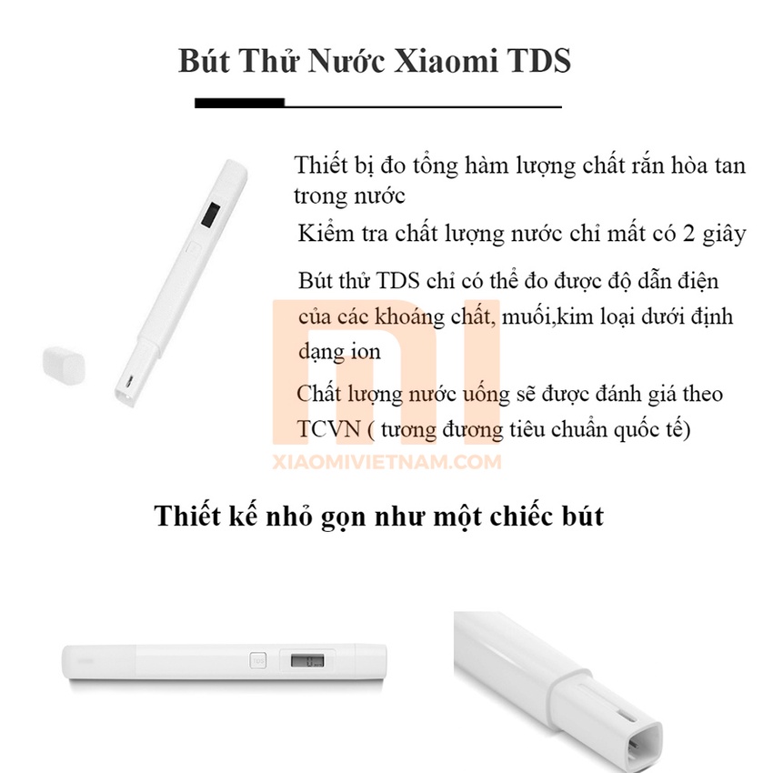 - Bút TDS Xiaomi được thiết kế nhỏ, đẹp và cao cấp, sử dụng 2 pin cúc.