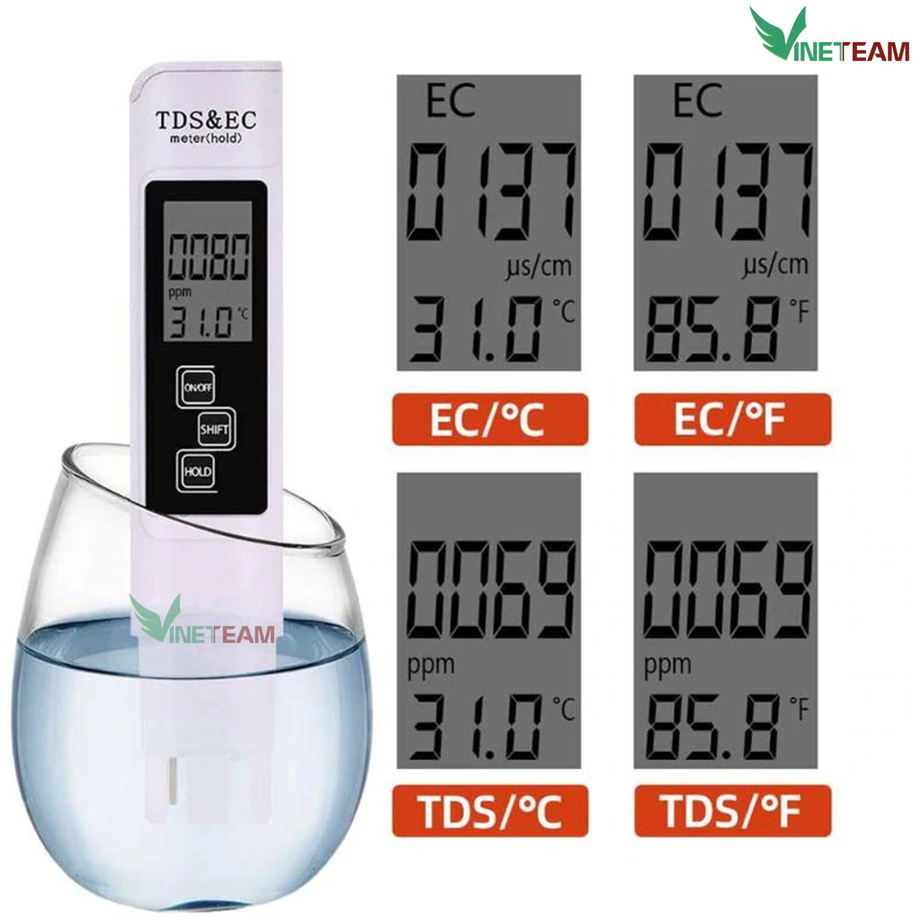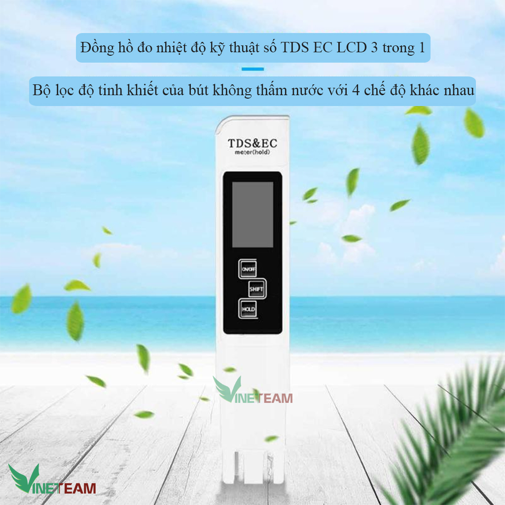 BÚT ĐO PH NƯỚC TDS EC PPM / TDS-3 HÀNG NHẬP KHẨU , MÁY KIỂM TRA CHẤT LƯỢNG NƯỚC LCD , BÚT THỬ NƯỚC SẠCH CAO CẤPVới sự phát triển khoa học công nghệ thi việc xuất hiện một sản phẩm thông minh và tiện ích là điều rất đỗi bình thường. VINET đang muốn nói đến BÚT ĐO PH NƯỚC TDS EC HÀNG NHẬP KHẨU , MÁY KIỂM TRA CHẤT LƯỢNG NƯỚC LCD , BÚT THỬ NƯỚC SẠCH CAO CẤP, là dụng cụ để kiểm tra chỉ số TDS của nước, chỉ số tạo ta dòng diện EC của nước, kiểm định mức độ tinh khiết cũng như nhiệt độ của nước. BÚT ĐO PH NƯỚC TDS EC HÀNG NHẬP KHẨU , MÁY KIỂM TRA CHẤT LƯỢNG NƯỚC LCD , BÚT THỬ NƯỚC SẠCH CAO CẤP là dụng cụ được sử dụng rộng rãi để kiểm tra nước uống, dùng trong phòng thí nghiệm, đảm bảo an toàn cho người sử dụng khỏi dịch bệnh, bệnh tật.