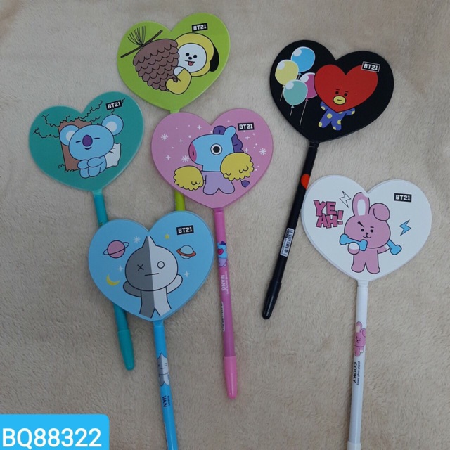 Bút gel quạt mini hình BT21( mẫu được đóng ngẫu nhiên nếu khách k yêu cầu )Bút gel quạt mini hình BT21