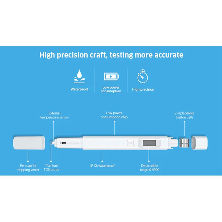 Dùng bút thử nước Xiaomi TDS để đo hàm lượng chất rắn hoà tan trong nước là cách dễ dàng và đơn giản nhất để biết được chất lượng nước đang sử dụng.Nước quan trọng, nhưng nước sạch quan trọng hơn.