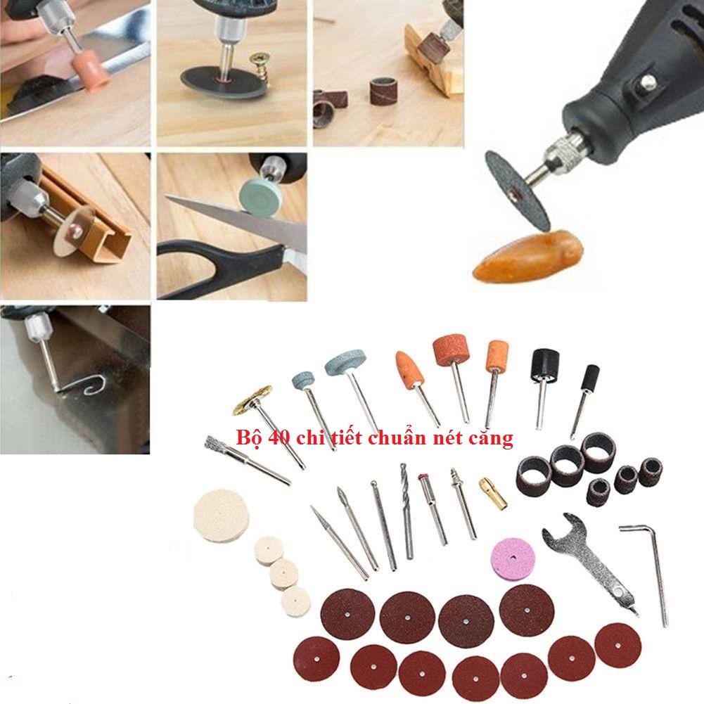 Bộ sản phẩm: 1 máy khoa + 1 nguồn 1 bộ phụ kiện 40 chi tiết