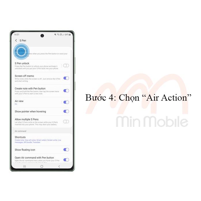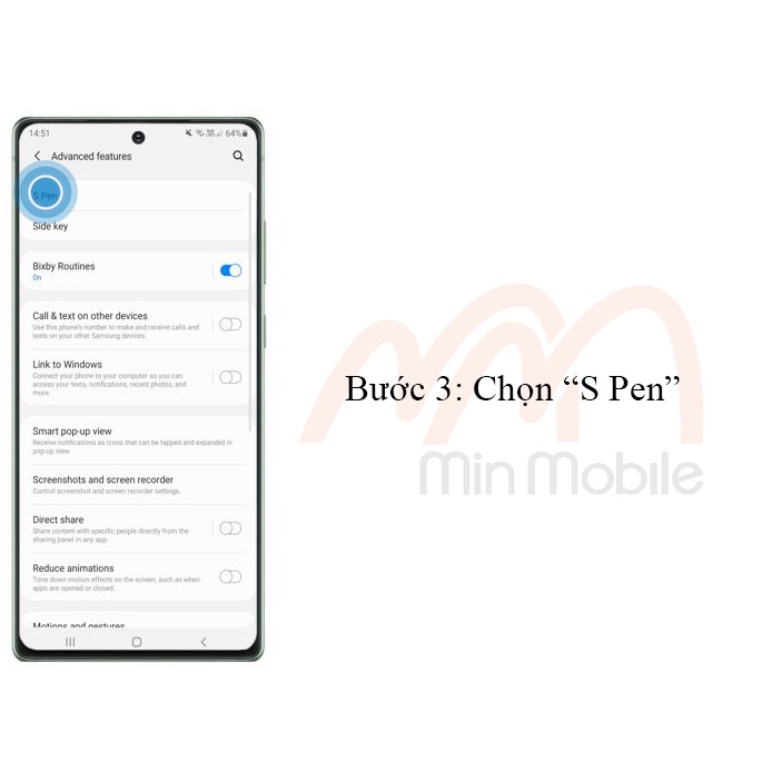 Sau khi đã tìm ra được phần S Pen các bạn vào phần điều khiển từ xa S pen