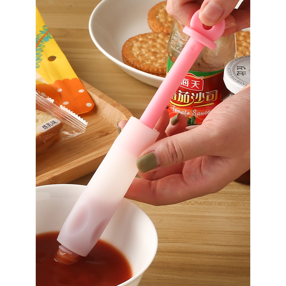 Cách sử dụng: hút kem, tương cà, tương ớt, nước sốt, sốt mayonnaise, socola... các loại thức ăn lỏng để trang trí lên món ăn, đẩy xi lanh tạo áp lực, và bóp vào thân bút để viết, vẽ lên món ăn