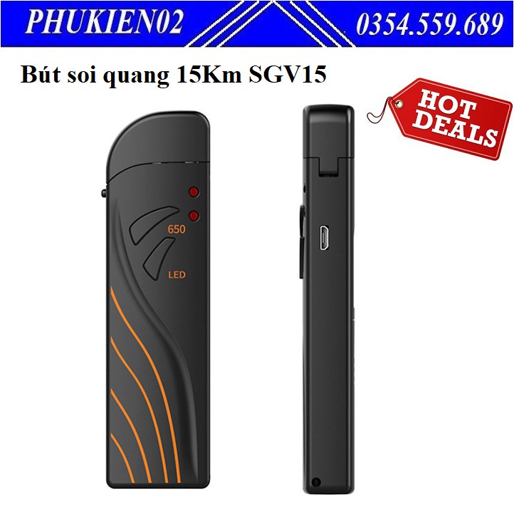Bút soi cáp quang 15Km SGV15 pin sạcBút dò lỗi sợi quang 15km SGV15 chuyên dùng soi cáp quang, kiểm tra nhanh lỗi đứt gãy sợi quang bằng ánh sáng đỏ. Bút có thiết kế nhỏ gọn hình dáng kiểu chiếc bật lửa, có nắp bảo vệ cổng soi quang, ngoài ra bút còn tích hợp đèn pin dạng LED hỗ trợ làm việc ban đêm. Bút sử dụng pin sạc giúp tiết kiệm chi phí sử dụng.