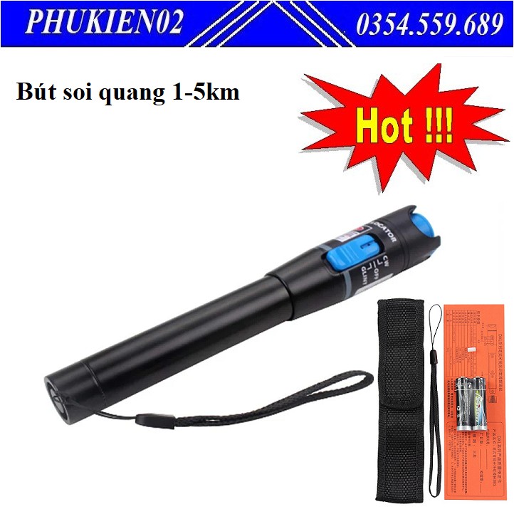 Bút soi sợi quang 5Km (hay còn gọi là bút soi quang, đèn soi cáp quang,…) là dụng cụ phát hiện lỗi và đo thông sợi quang bằng ánh sáng nhìn thấy. Bút soi sợi quang 5Km được thiết kế nhỏ gọn như 1 chiếc bút giúp bạn dễ dàng mang theo khi thi công các đường cáp quang.