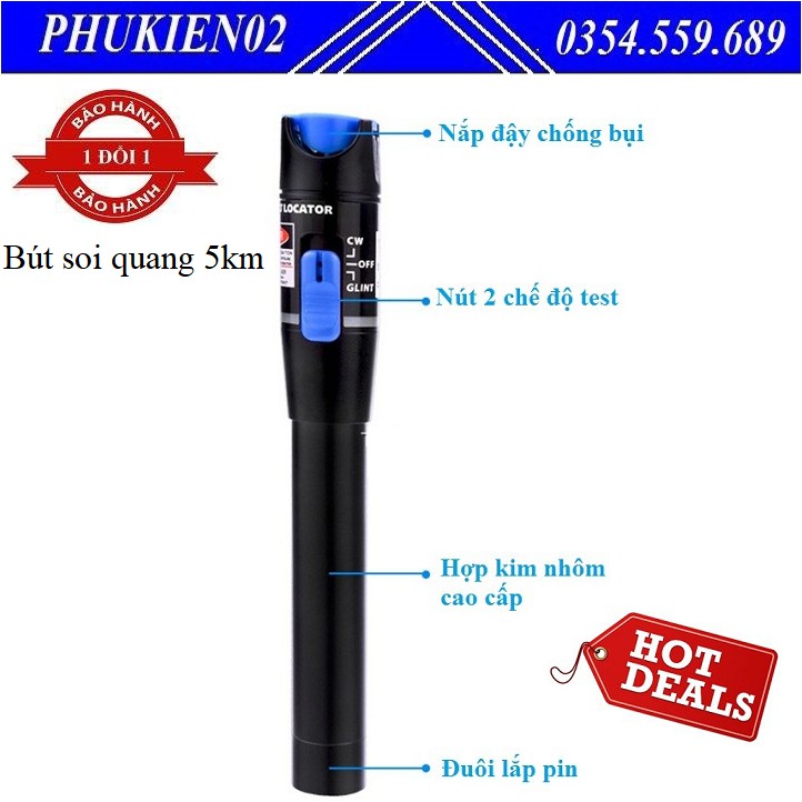 Bút soi quang 5km - bút soi quang, đèn soi cáp quang chất lượng cao, độ bền cao, chống chịu được va đập - Hàng chínhhãng