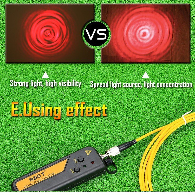 ánh sáng màu đỏ như một dây cáp quang bút laser lõi, được kết nối với sợi phát hiện, nghỉ ngơi chất xơ, uốn vị trí lỗi, các OTDR mù xử lý sự cố sử dụng một đầu adapter phổ (2.5mm đầu phổ biến đo lường FC, SC , ST-type connector, adapter không cần phải thay thế người đứng đầu, LC / MU đầu cần phải thực hiện các thử nghiệm cho sau này chuyển cửa hàng đầu) công nhận chất xơ khoảng cách lên đến 20km dài làm việc ánh sáng mạnh dễ nhận thấy có thể đạt hơn 50 giờ thời gian kể từ khi nhỏ Loại bút màu đỏ được sử dụng trong cấu hình pin nhỏ thứ 7