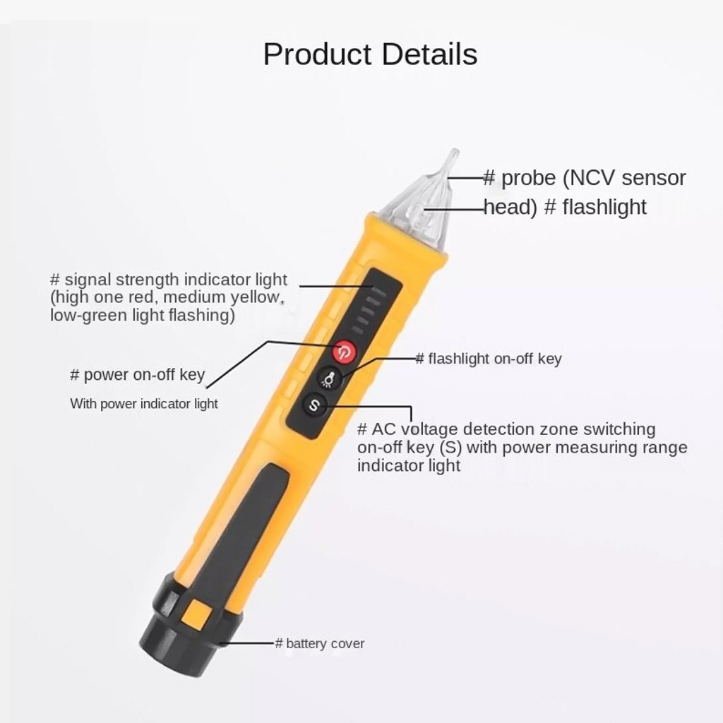 3. Hiệu suất mạnh mẽ: Chất liệu thân bút bằng nhựa ABS chắc chắn. Tự động tắt khi không sử dụng giúp tiết kiệm pin. Nếu bút thử không hoạt động trong vòng 5 phút và không phát hiện thấy tín hiệu điện áp, nó sẽ tự động tắt.