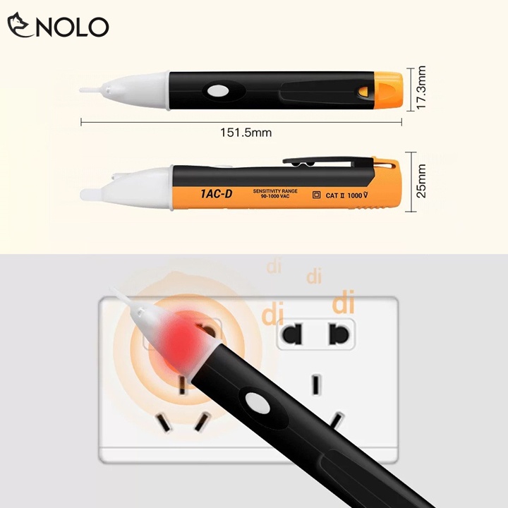 Nhà cửa & Đời sống > Dụng cụ & Thiết bị tiện ích > Dụng cụ > Dụng cụ đo lường || Bút Thử Điện Không Tiếp Xúc Thử Điện Xoay Chiều AC 90 - 1000V Model CAT II Có Âm Báo Đèn Báo Dây Nóng Dùng Nguồn Pin AAACòn hàng