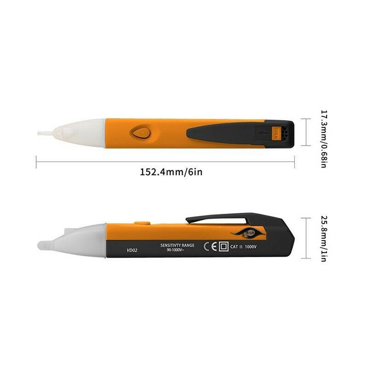 Nhà cửa & Đời sống > Dụng cụ & Thiết bị tiện ích > Dụng cụ > Dụng cụ đo lường || Bút thử điện kĩ thuật số có đèn LED và âm báo VD02 tặng kèm pinCòn hàng