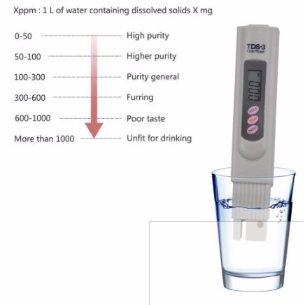 👉Tổng chất rắn hoà tan (TDS) từ 500mg/lít = 500ppm là mức có thể sử dụng.