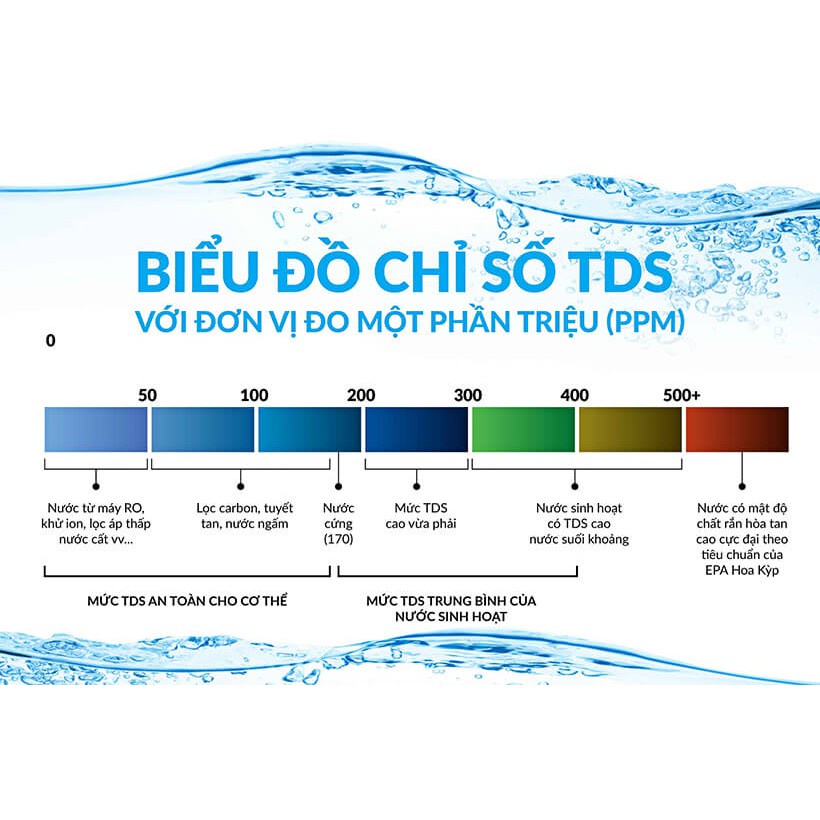 Những sản phẩm với hàm lượng TDS dưới 1000mg/l có thể dùng để giải khát thường xuyên , không giới hạn số lượng.