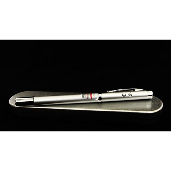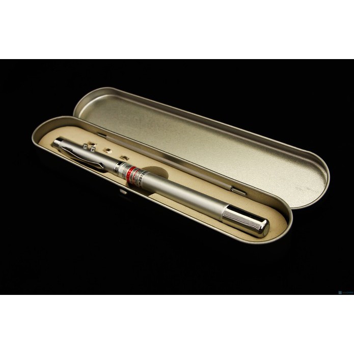 + Bút tích hợp một đèn laser ở một đầu có tầm chiếu khá xa và đèn led chiếu sáng.